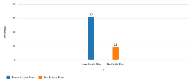 Graph showing: Only 77% of households with more than $1 million in net worth have any estate plan, will, or trust in place (Vanilla). Suggested visualization: Bar chart or visual indicator showing “Have Estate Plan” (77%) vs “No Estate Plan” (23%) to emphasize that nearly 1 in 4 millionaire households lack basic protection documents.